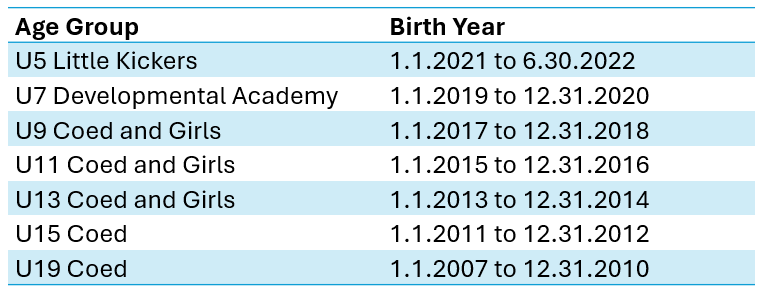 | U13 | 2012, 2013 |